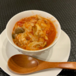 寒い冬にあったかおかず!鶏を食べた後に、ご飯を入れてリゾットやパスタにかけても美味しいです!